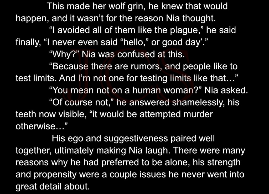 I didn’t recognize it during the moment I added a joke, or gave detail to emotions, I’m simply wrote and the expression is beautiful. In fact, that entire chapter was great! The context, dialogue and settings were almost unreal to me. I am very proud of this manuscript.