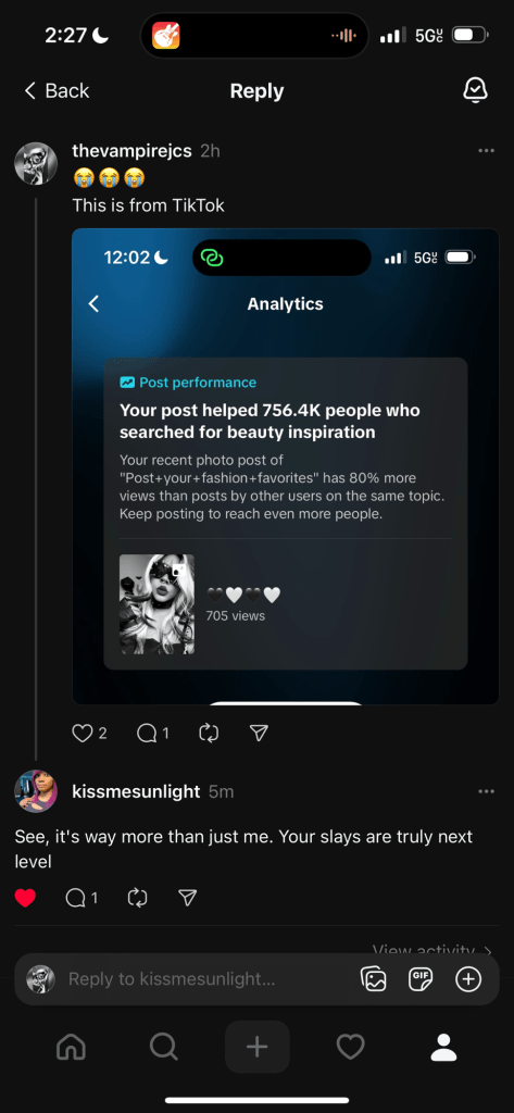 I received a notification from TikTok today – nearly 800k people were interested in one video! How this is happening without me flying off to the moon from excitement is beyond me! Nearly 1mill people viewing my work is amazing!