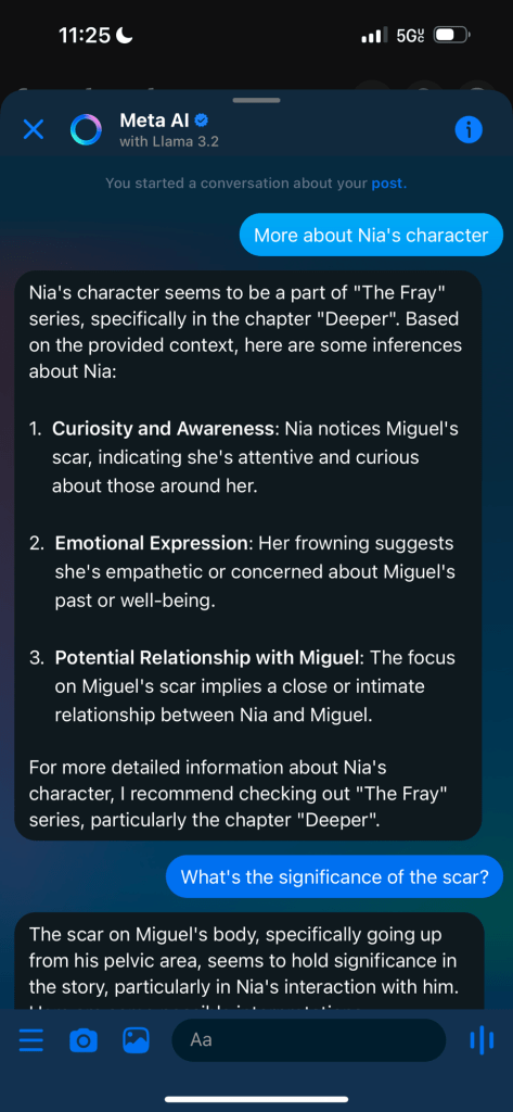 Before I go any further – I am not a fan of AI. But seeing as how my previews are circulating all over…the bot got parts of the story line correct. I am impressed.