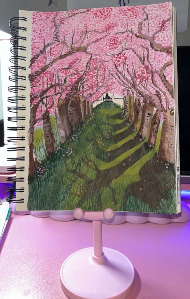 I love spring, as I was born about the middle of it, and so I will always be enamored by the season. Last year, I painted sakuras. That was fun, and I wanted to try probably one of my favorite blooms. They are fleeting, blooming mid/late April to early May. Once the temperature rises, they fade away.