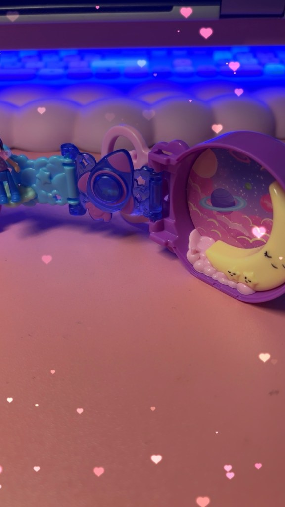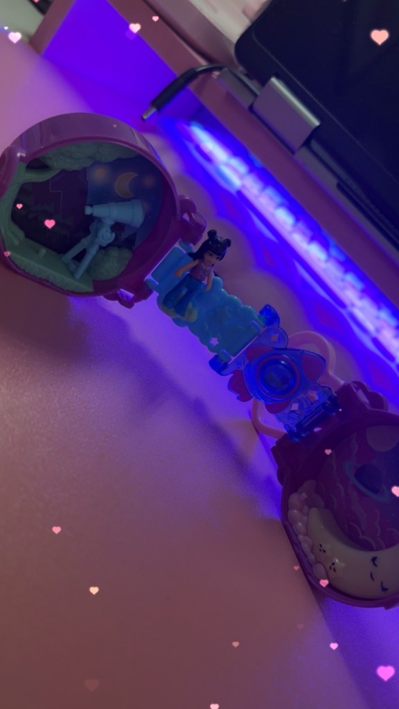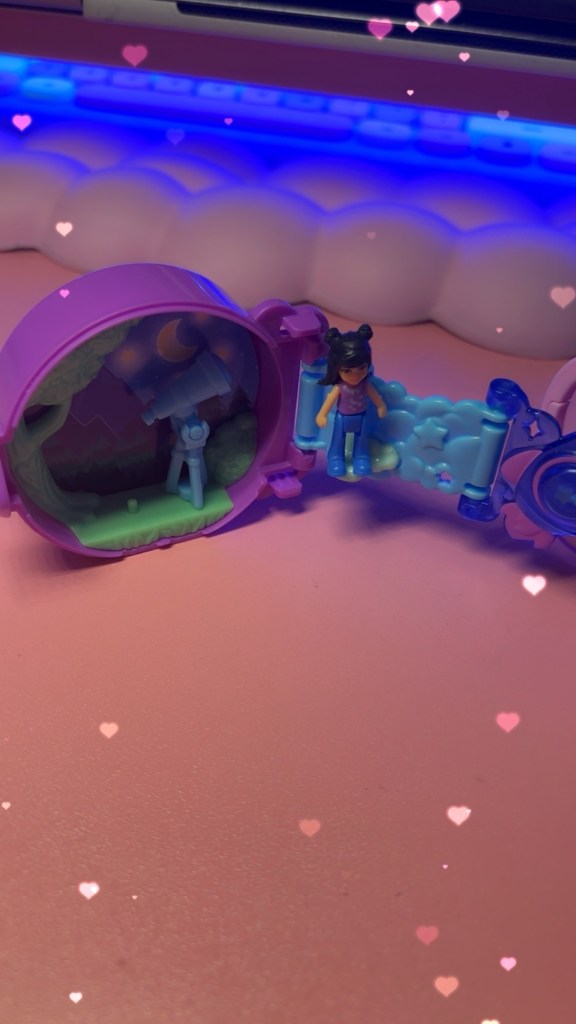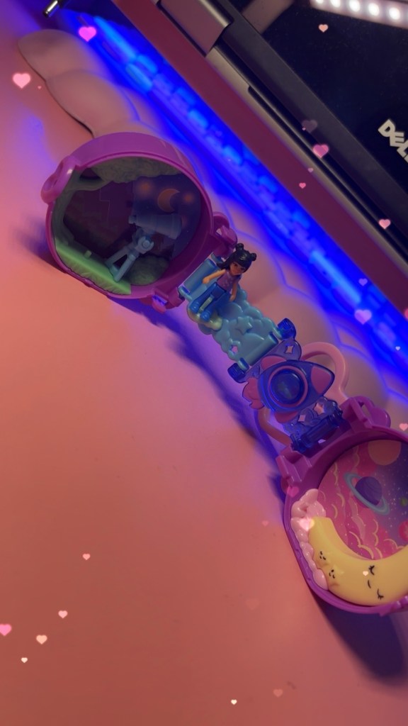 Story time! The only Polly Pocket I ever owned aside from this one now – was a forest setting. Complete with a tiny cottage, moss and bunnies! Someone stole Polly out of it! (It had a wrist band to it) and honestly, I was pretty upset. I believe I was 10 when I got it 🥰