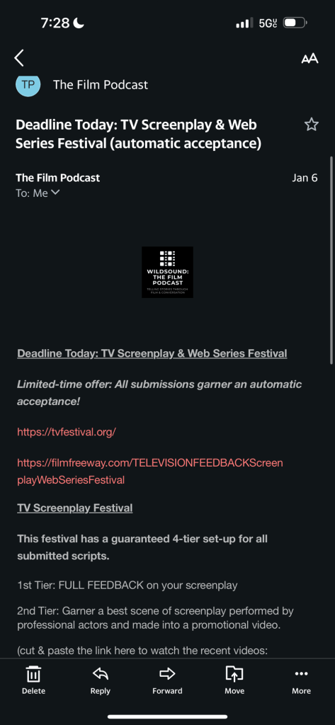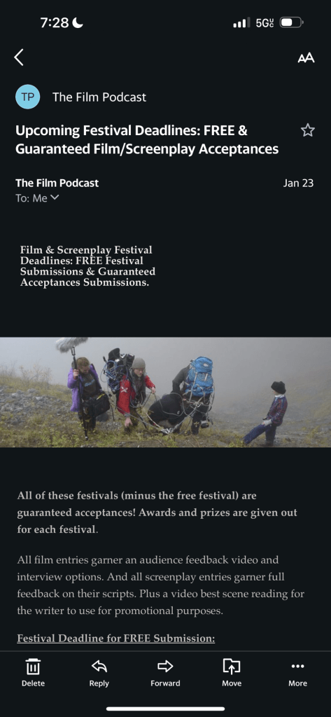 Since late 2024, I have been receiving “guaranteed” film submissions, all or most within the category of the script I’d written – Sci-fi.