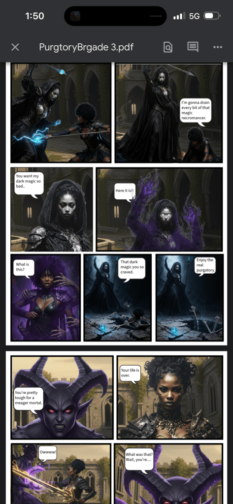 The first edition for this is available online (Purgatory Brigade) and you can see more clips of it on TikTok, via @blackqueencomics!