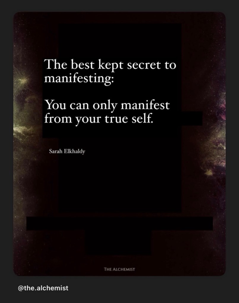 I saw a post earlier that said, “you can only manifest from your true self” –Sarah Elkhaldy.