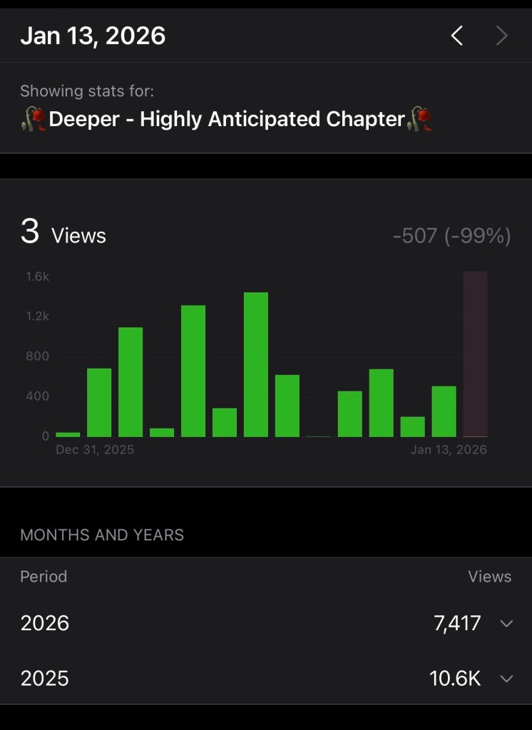 Reads are close to 20k, and I would love to reach that milestone before the 27th! I am so grateful for the support and interest of my novel, this has been so much fun!