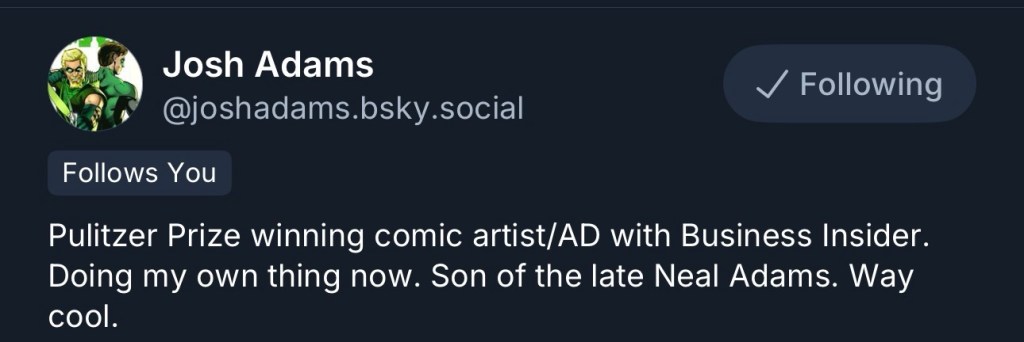 Bluesky is filled with amazing things I often forget about. People just follow me on there, and I’m not as active as I’d like to be.