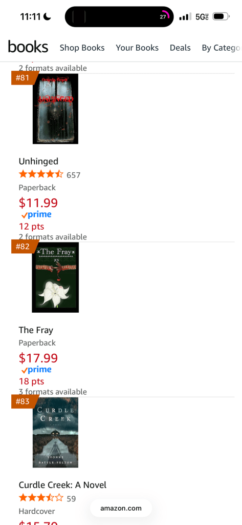 Fresh from being newly released, The Fray is sitting at 82 for Kindle and 98 for paperback/hardcover!